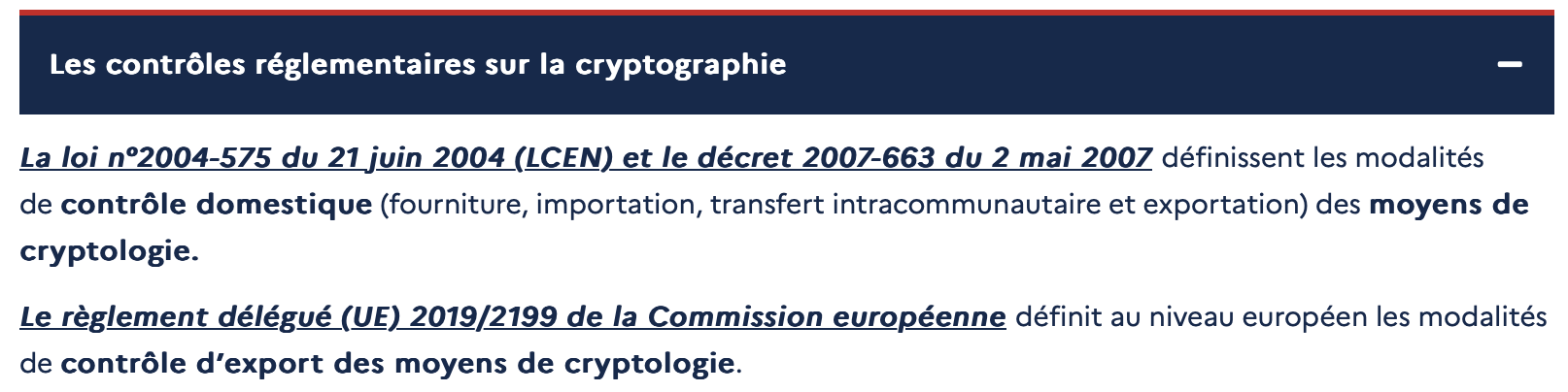 En France, les moyens de cryptologie sont soumis à une règlementation spécifique.