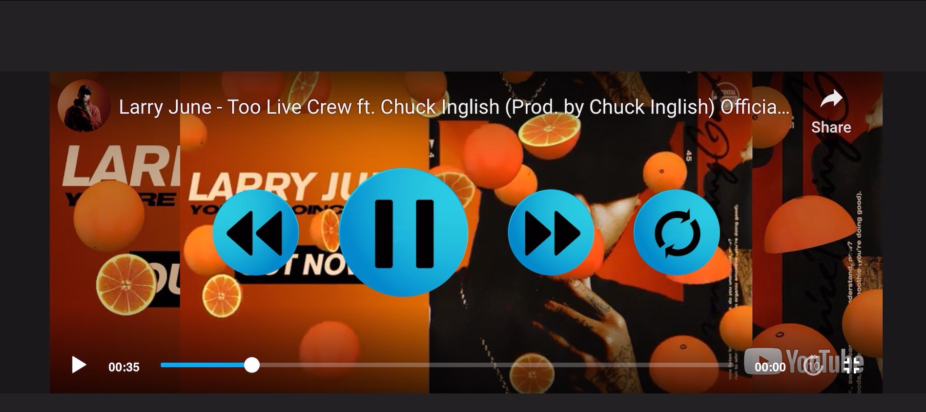 Also, there isn't really a gray frame around the player. There are horizontal dark-gray areas above and below, which look like window background, and vertical black areas on the left and right, which look a fill provided by the video player view itself, where the view height and aspect ratio force the width to be less that the full view width.