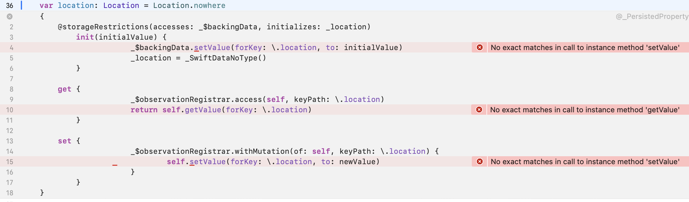 The SwiftData docs seem to indicate that this should be possible. Can anyone recommend a fix?