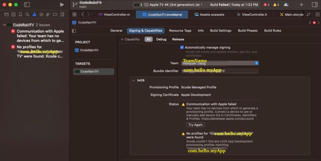 I’m developing this tvOS app, and it builds and runs fine locally in Simulator.