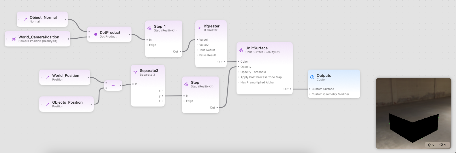 In Unity, there is a 'isFrontFace' boolean node that allows for applying different colours to the front and rear faces. However, I am unsure of how to achieve the same effect in Reality Composer Pro!