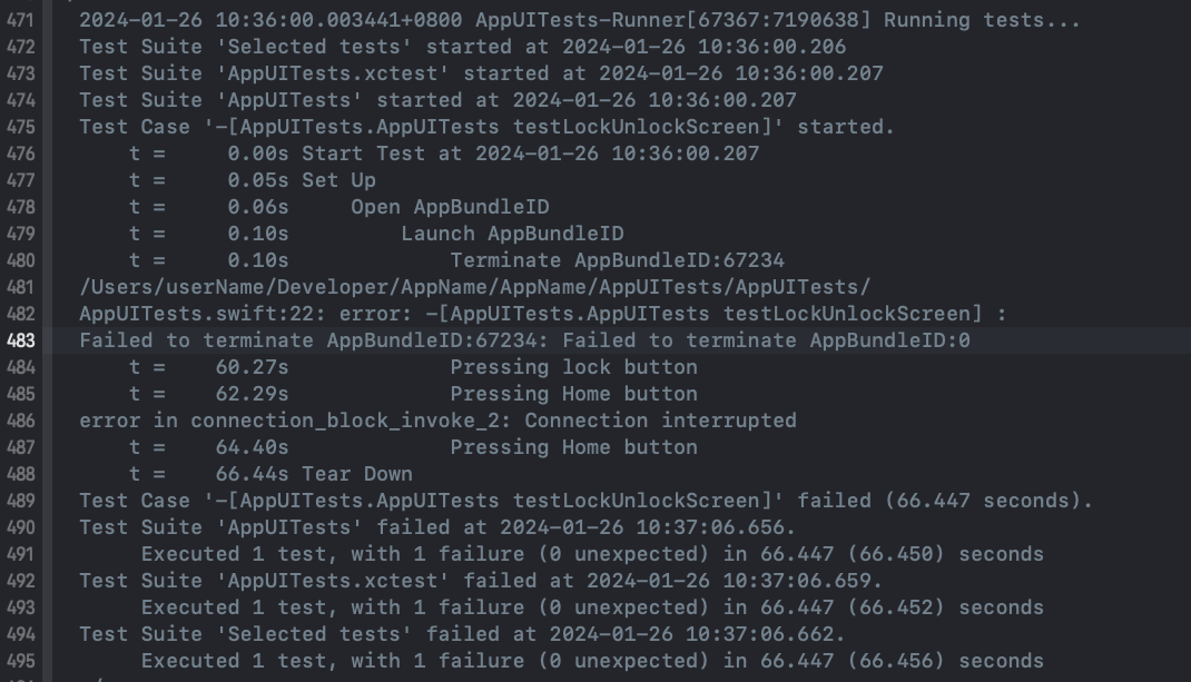 Since I start to wrote UITest, this keep happened with no waring, following image is the log, sensitive info has been replaced.