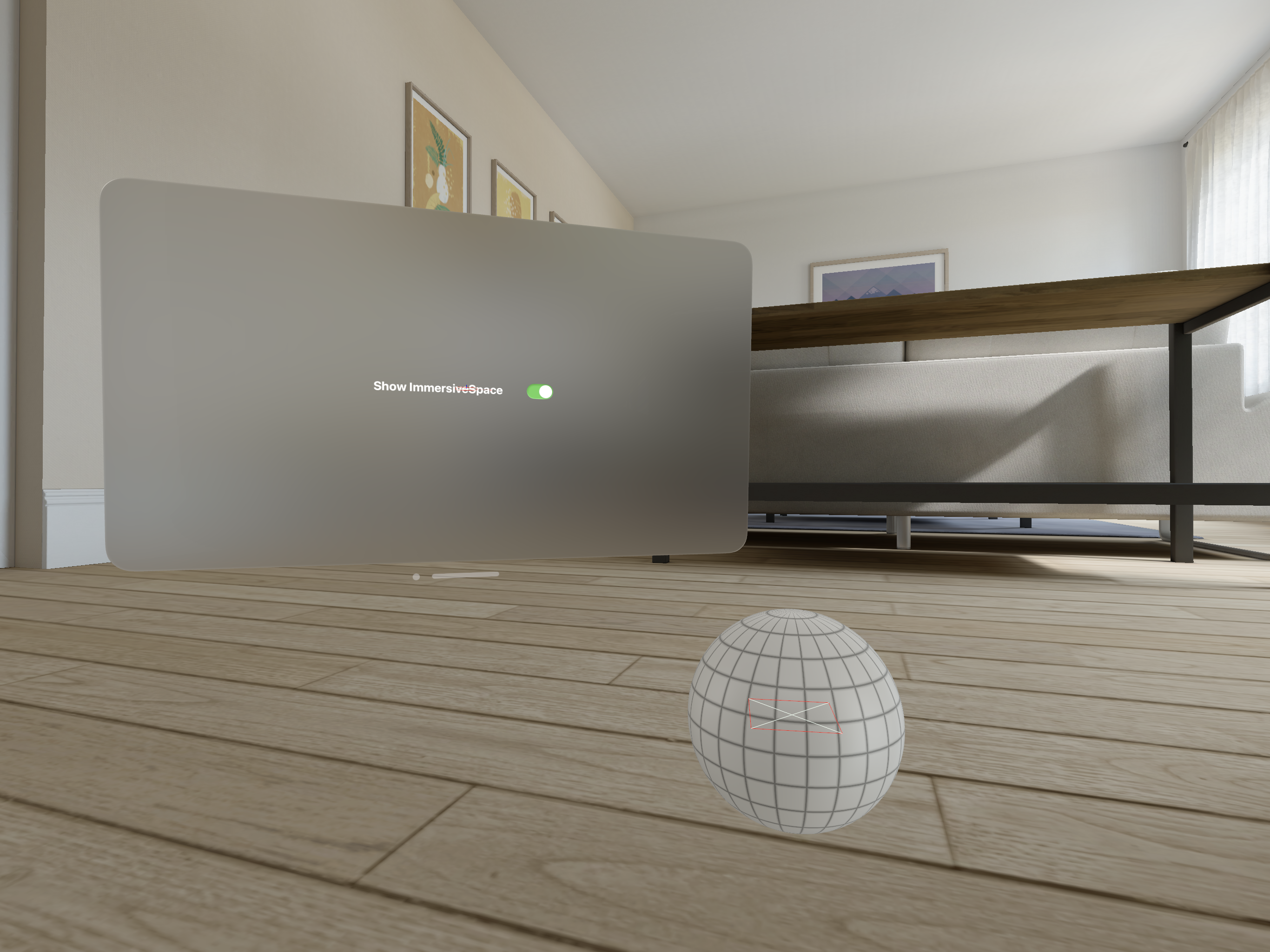 The below code snippet provides the position of the device, and I have positioned it 0.5 meters away from the z-axis. However, my objective is to obtain the position of the glass window and anchor the sphere to it. Any guidance on achieving this would be appreciated.