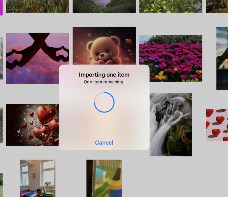 After a drag/drop of an item into my app's collectionView, UIKit shows this progress UI while the data loads: