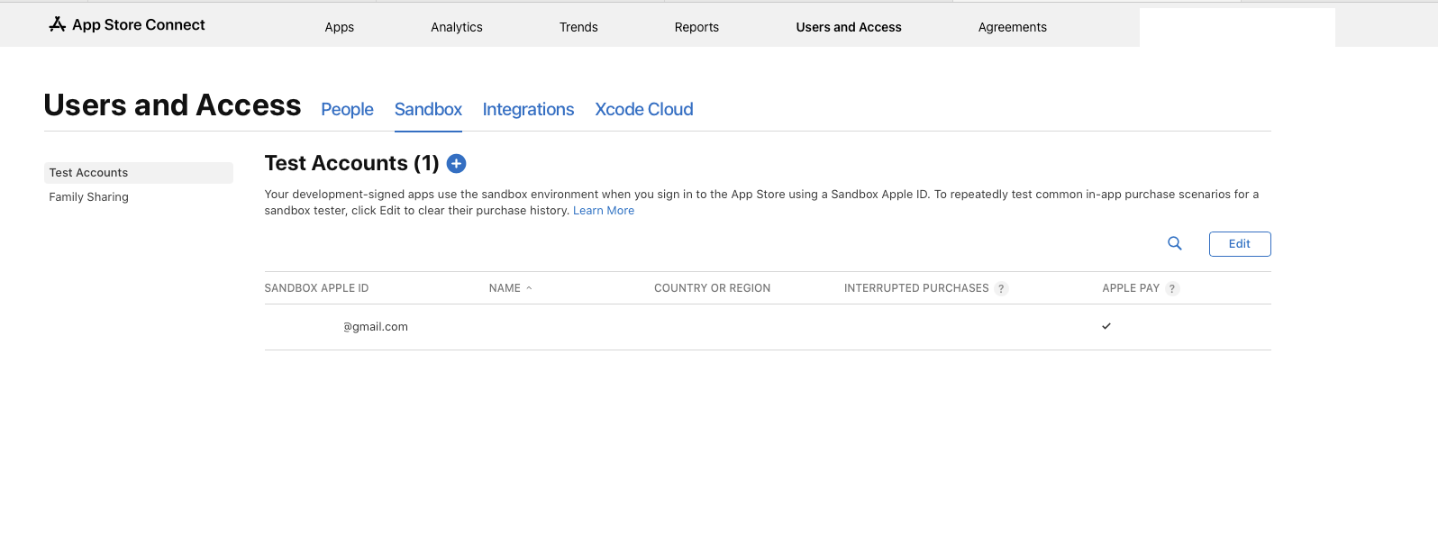 I also added the new apple id account into App Store Connect as sandbox tester -