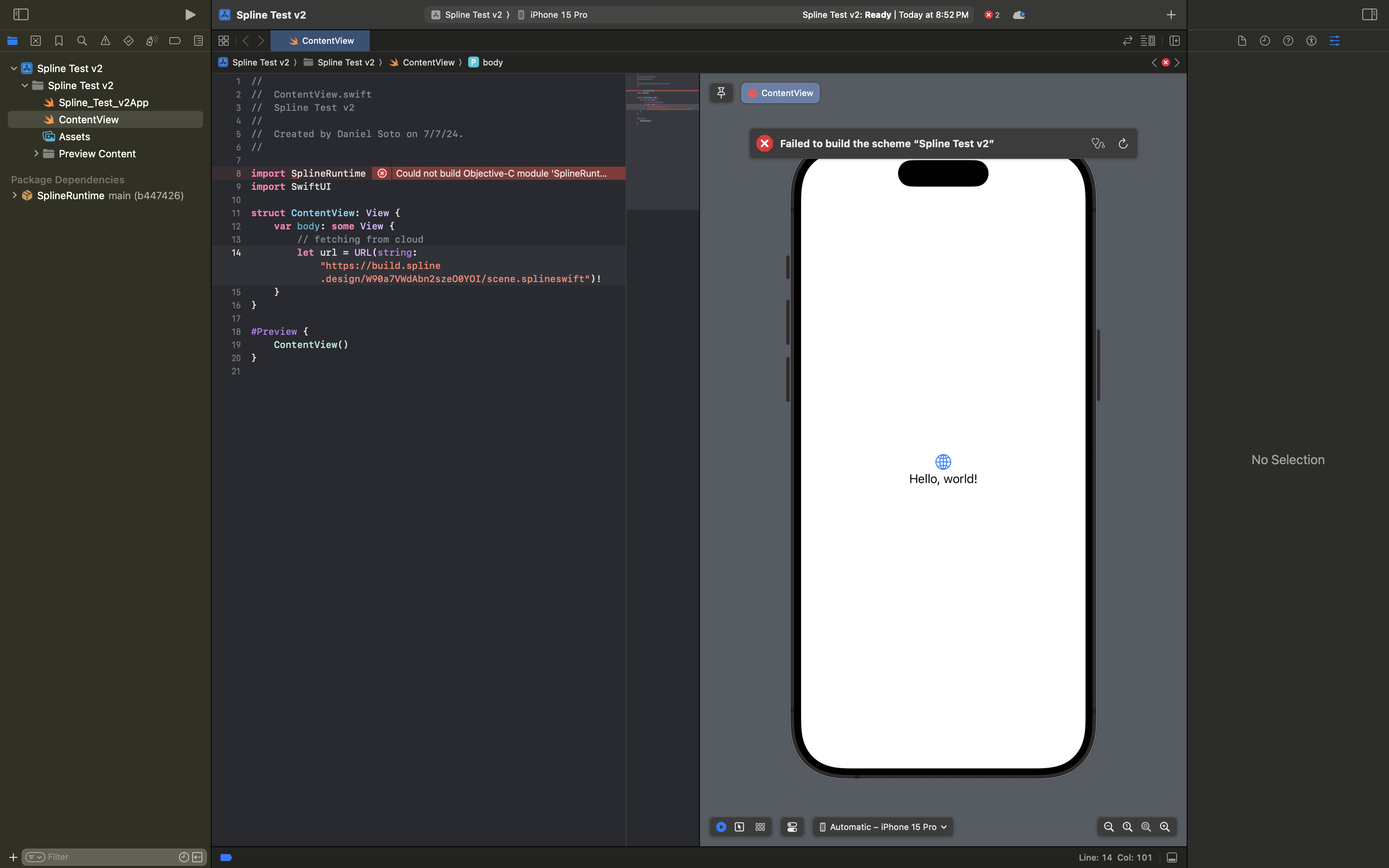It gives me error for "import SplineRuntime". It says no such module even if I add the packagies dependencies from github. I tried to rebuild and clean everything but it still gives me this error.