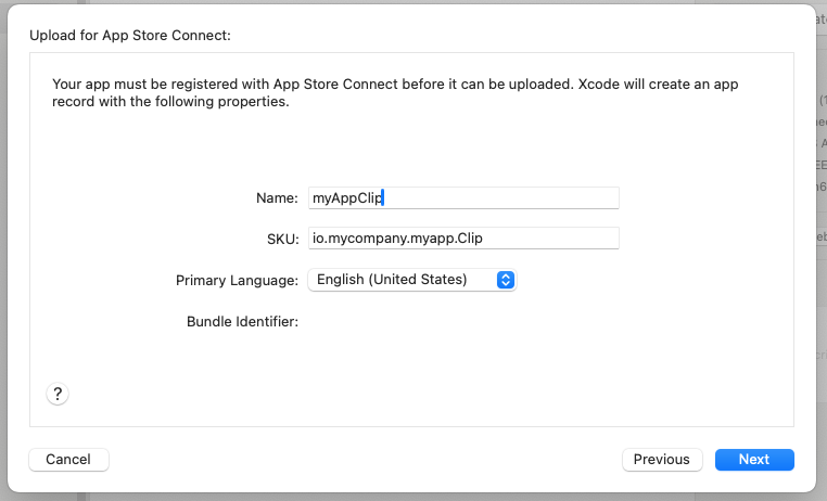 The already existing app has a bundle id io.mycompany.maypp, and the app clip has io.mycompany.myapp.Clip