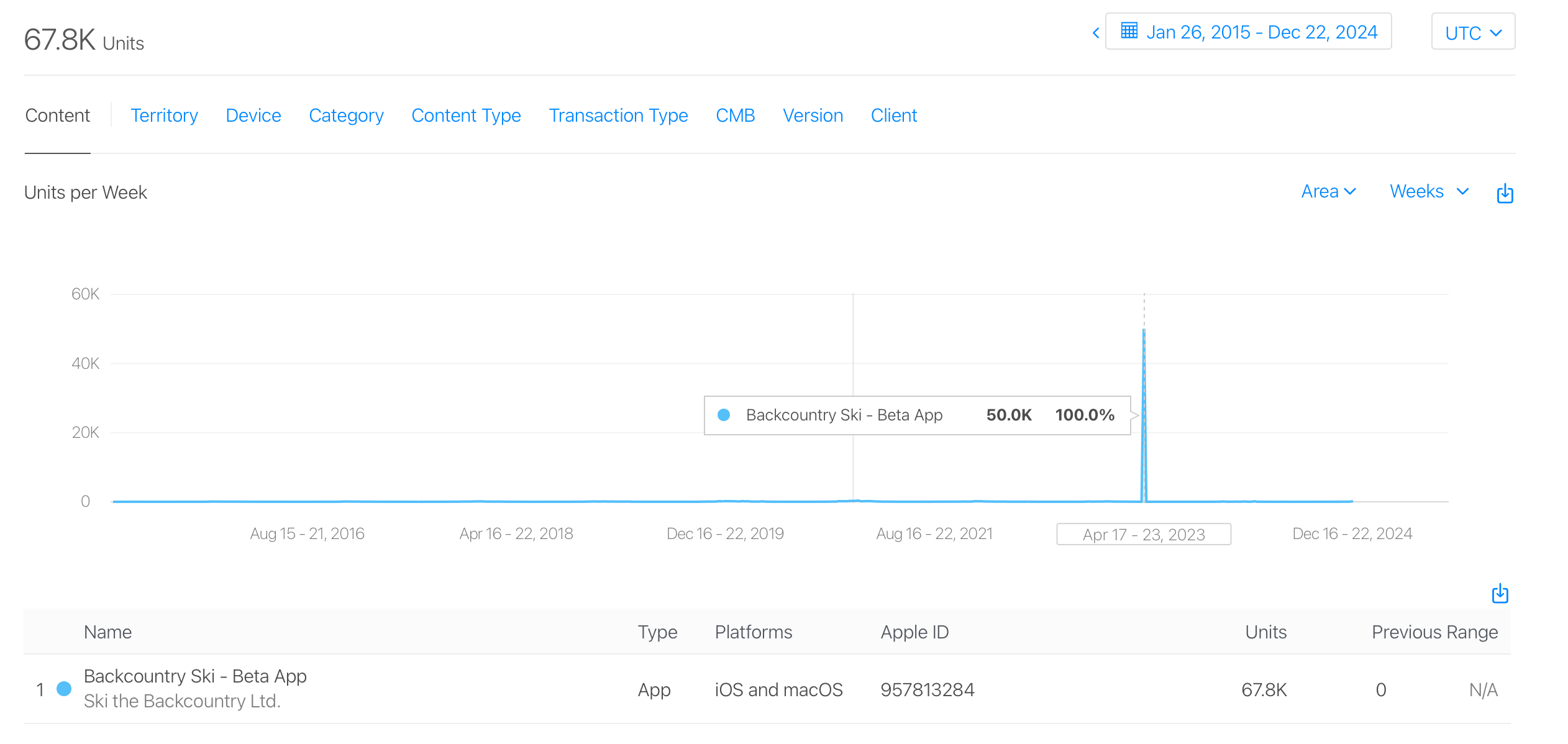 I had a one day 50,000 unit institutional purchase of my app. Whenever I try to display a graph of downloads, the x-axis scale is so far off that the remainder of the days are invisible. Is it possible to filter out institutional purchases? None of these were actually downloaded AFAIK so I'm not sure why they are included.