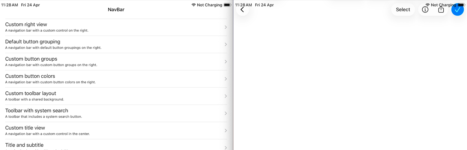 I'm experiencing a navigation bar positioning issue with my UIKit iPad app on iPadOS 26 (23A340) using Xcode 26 (17A321).