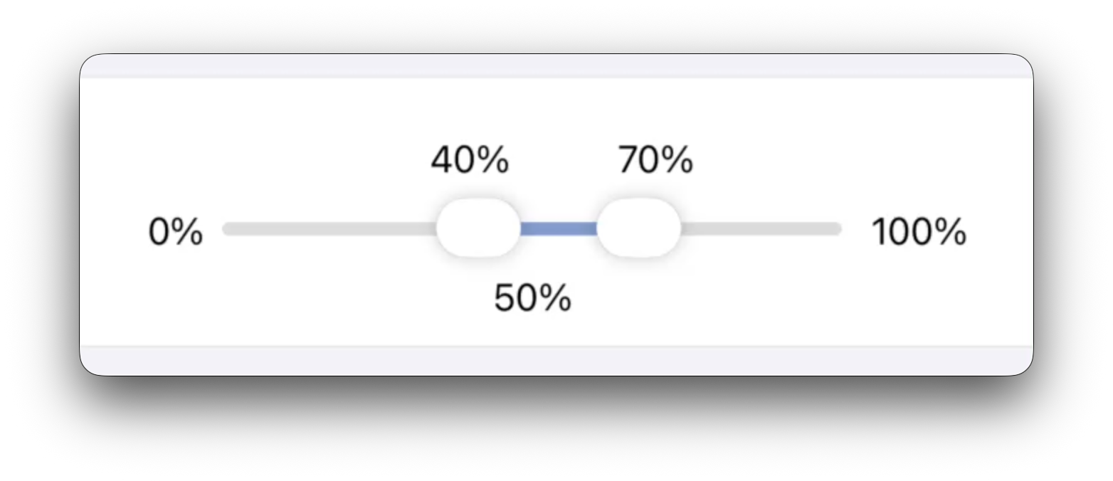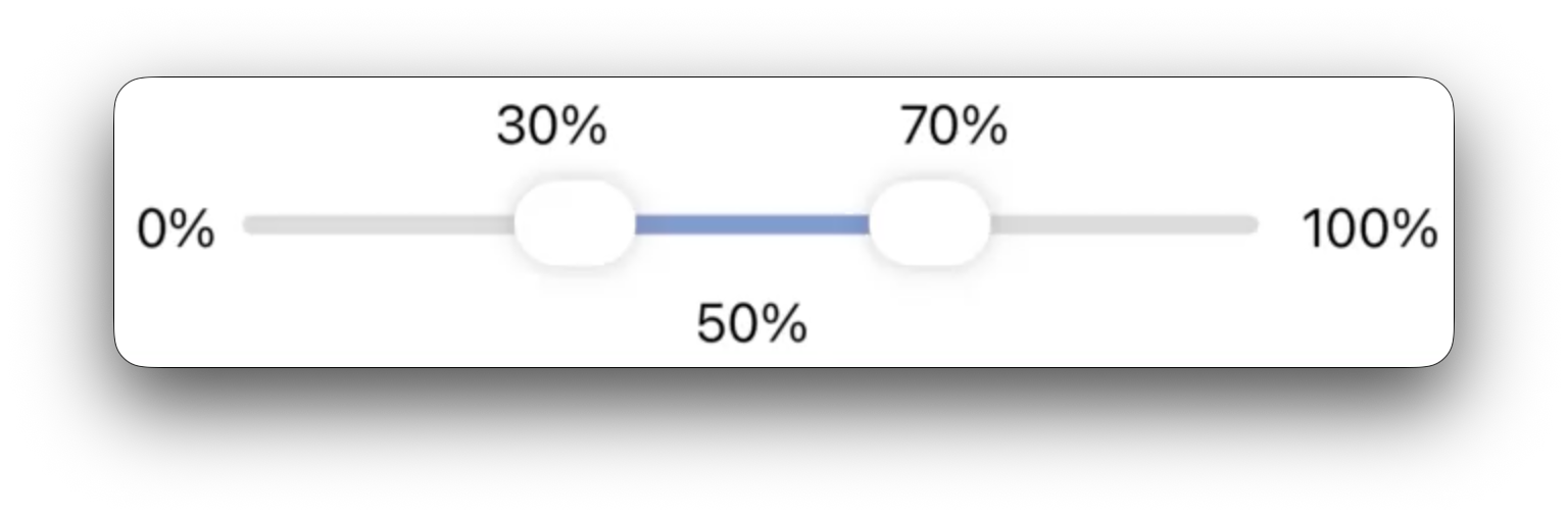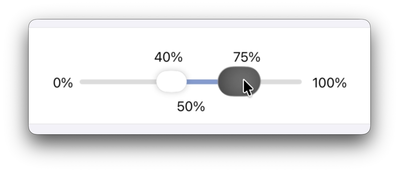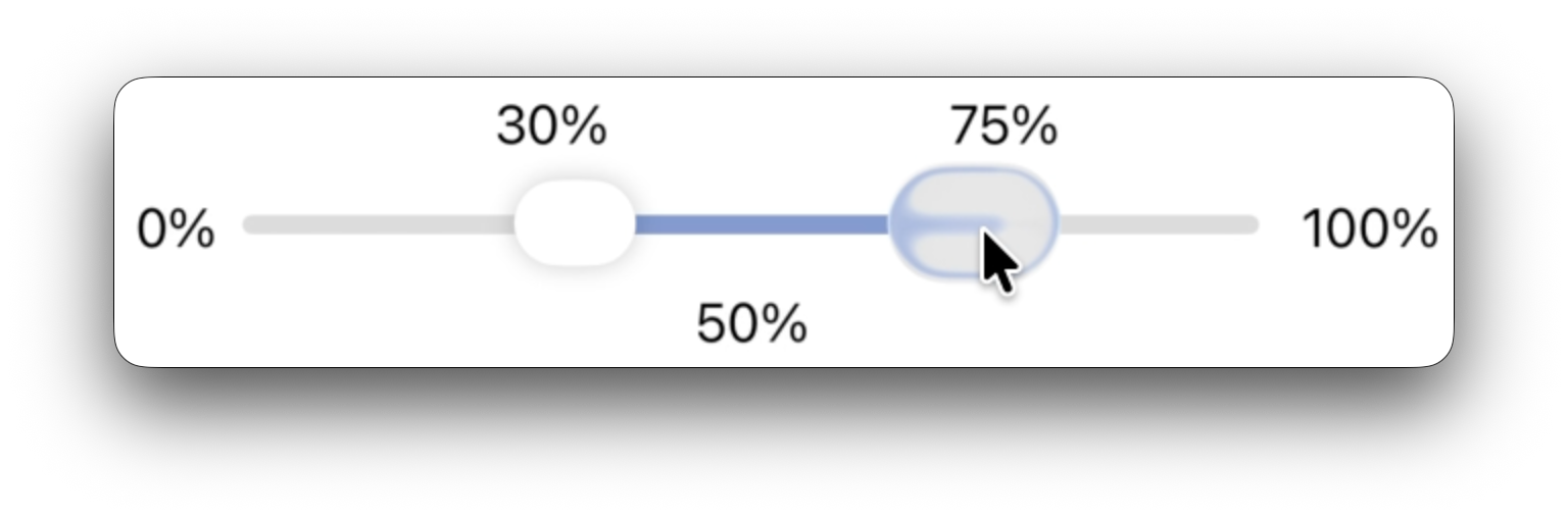 I made a custom SwiftUI control with two sliders trying to mimic the appearance of the new sliders in version 26 OSs. I was able to get something close to the way Apple's single slider looks and works. This is how it normally looks: