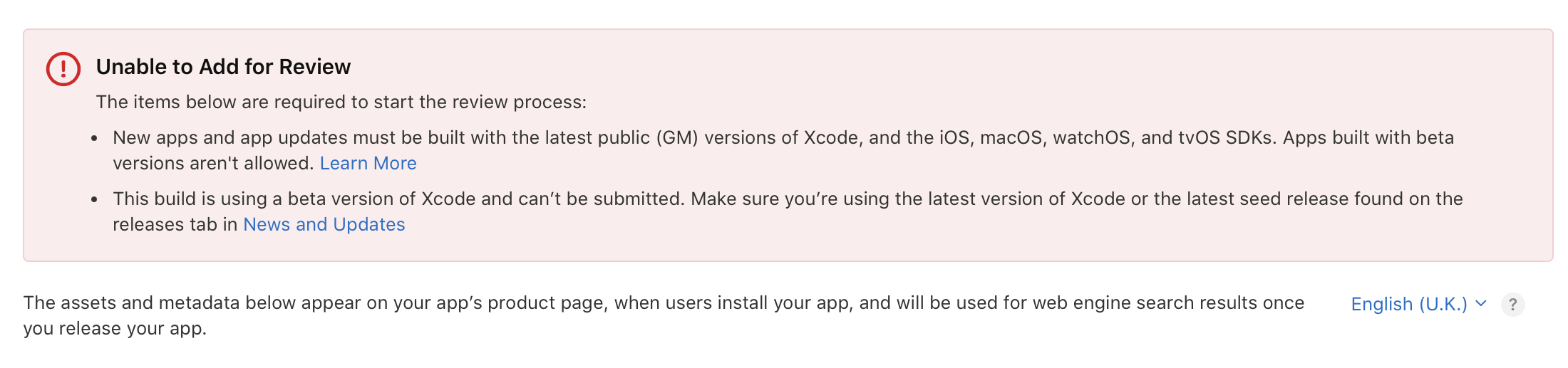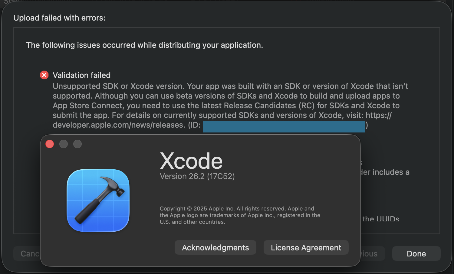Being able to submit with the RC would let us validate TestFlight builds ahead of time and ensure a smooth transition once 26.2 is released. At the moment, it isn’t even possible to test distribution builds, which makes it hard to prepare properly.