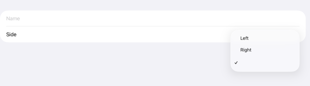 .pickerStyle(.menu) // displays with "Left" selected even though side is nil