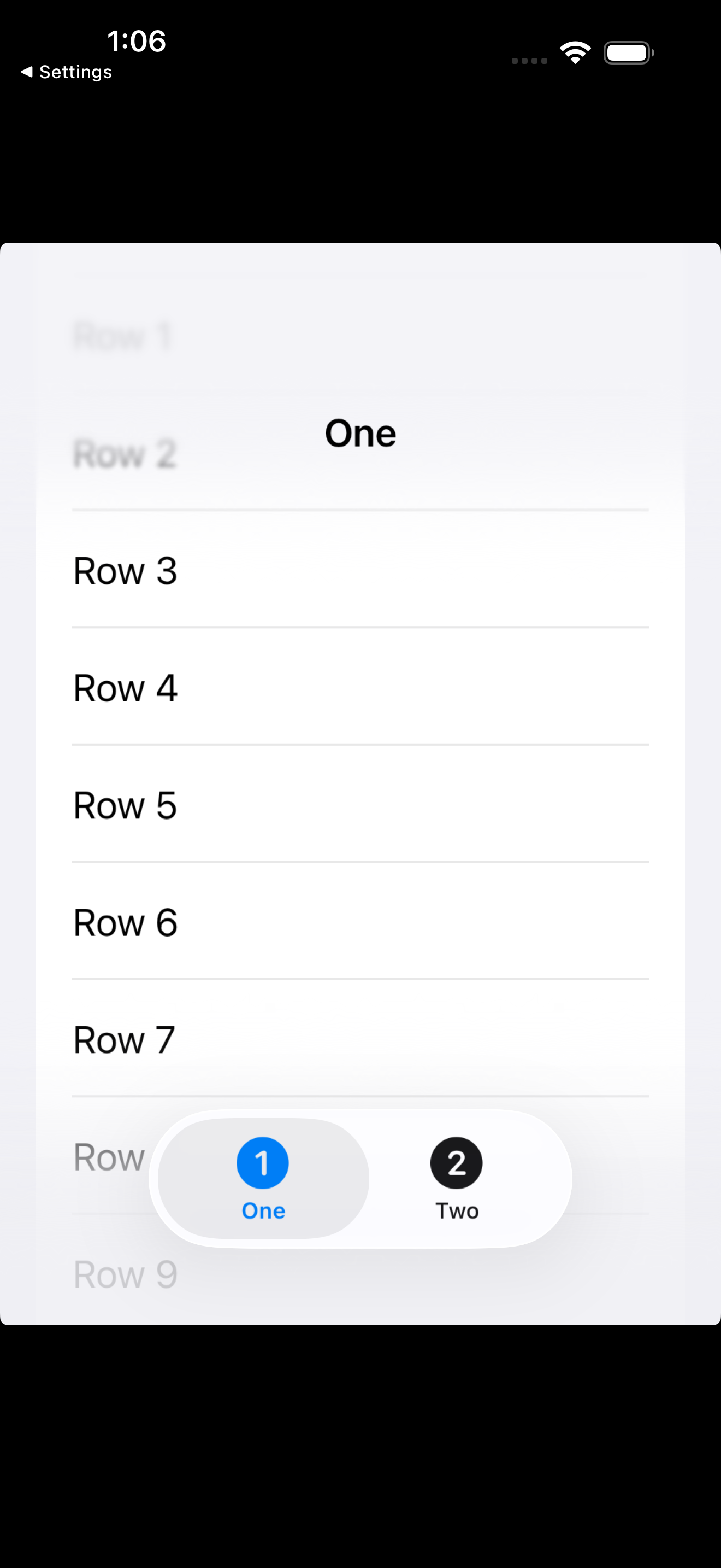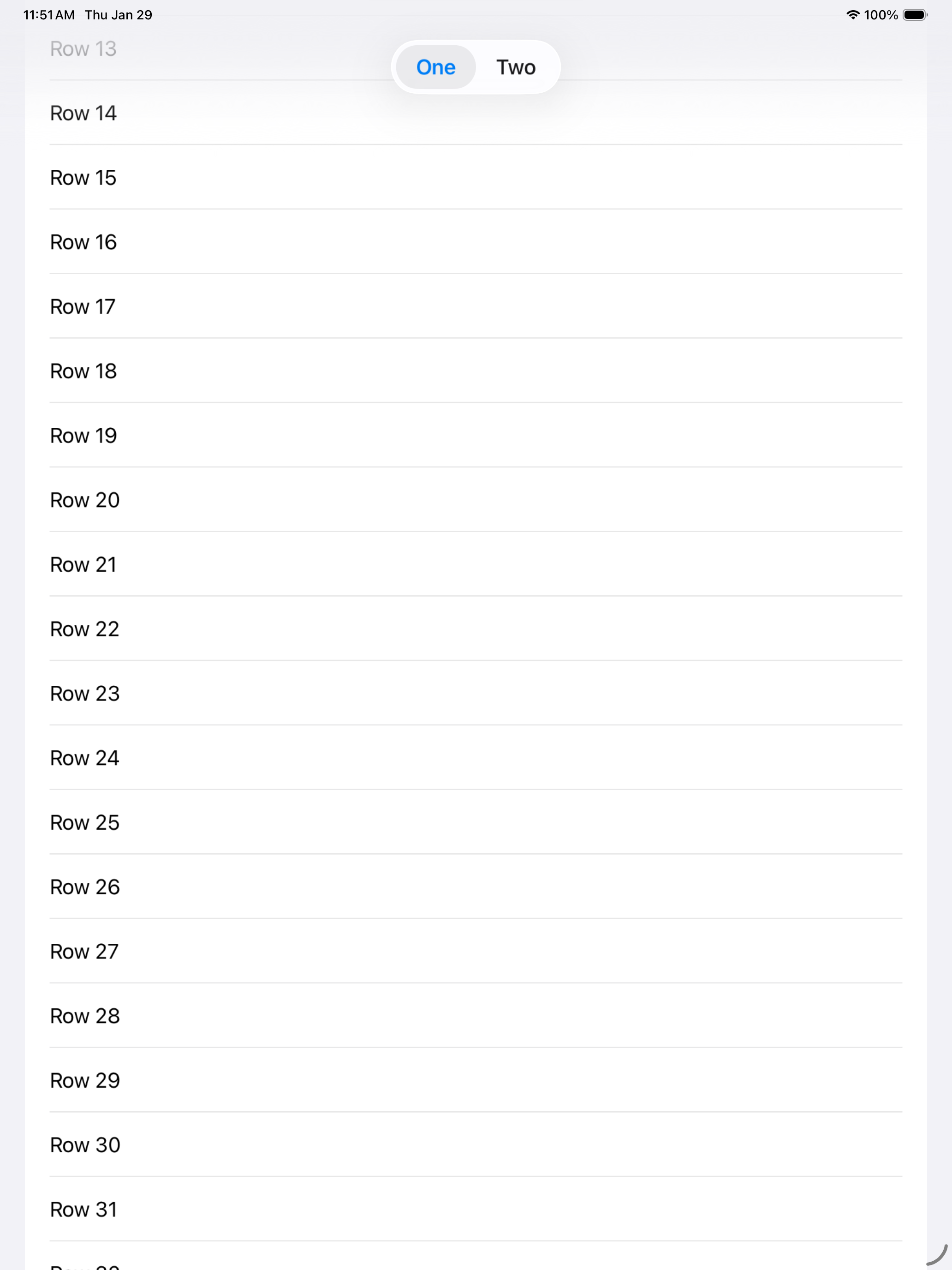 3. Scroll the list so that some rows are partially hidden behind the navigation bar (showing the native faded appearance).