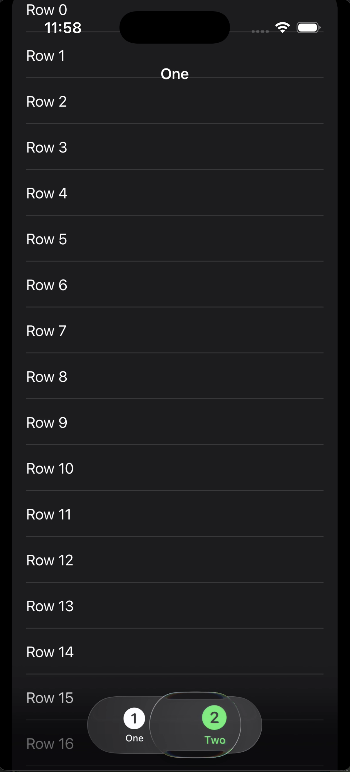 /// - Switch tabs: those partially-faded rows briefly flash fully opaque. Partially faded rows under the tab bar do not flash