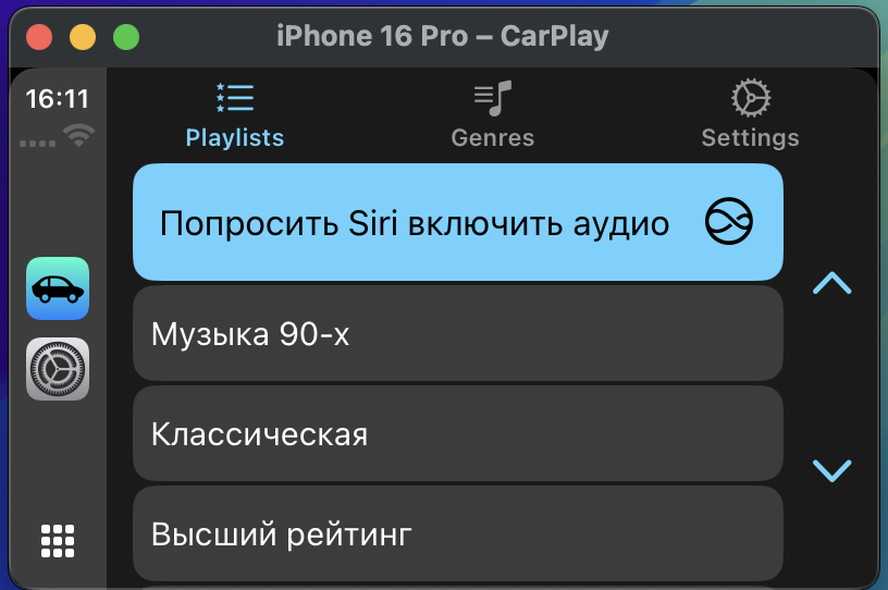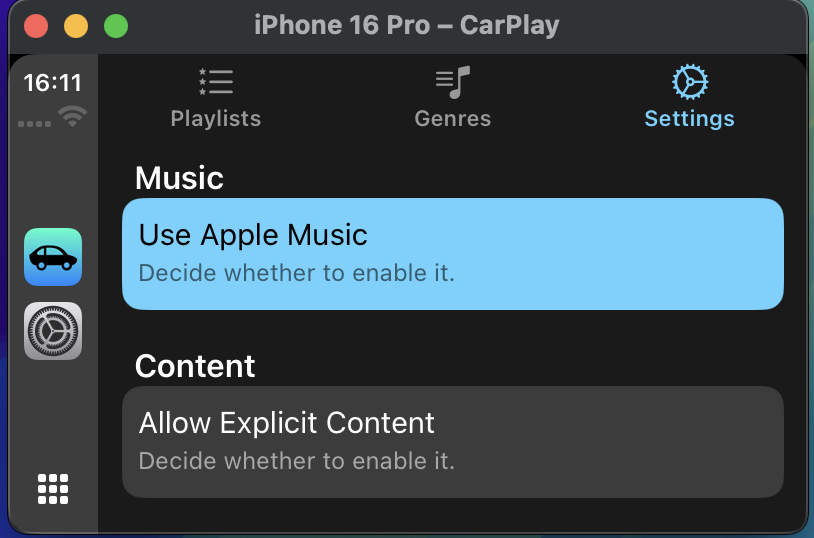 Reproduced using the code example "Integrating CarPlay with Your Music App" from the official Apple documentation - https://developer.apple.com/documentation/carplay/integrating-carplay-with-your-music-app