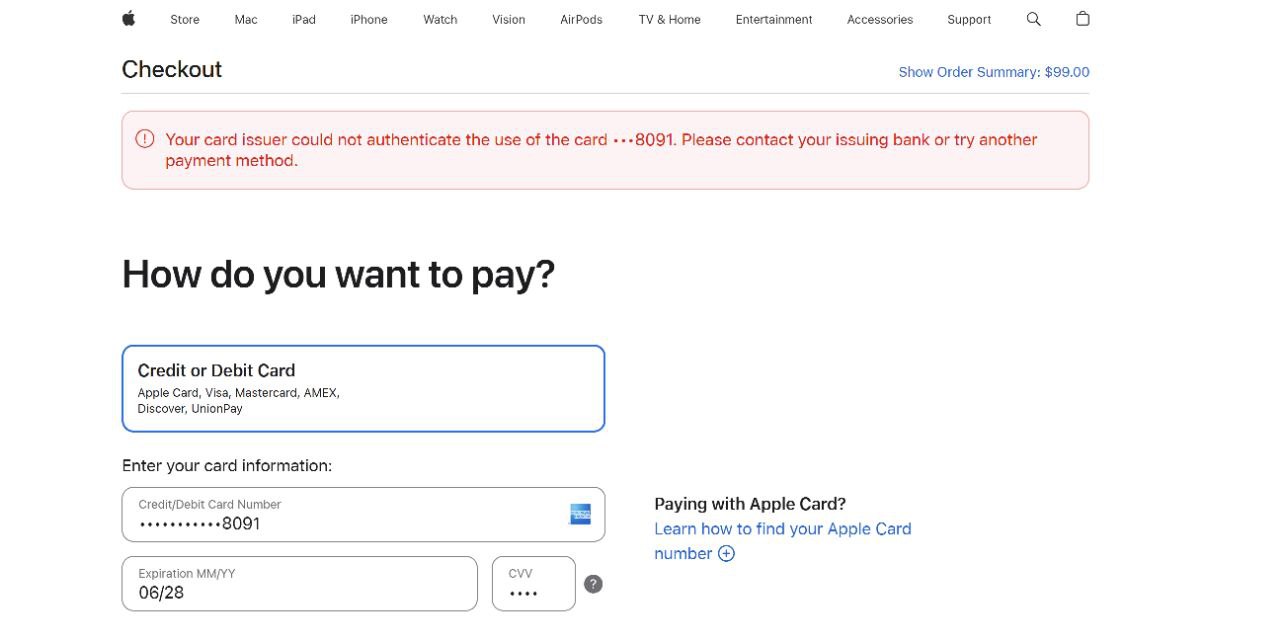 There was a problem with the payment