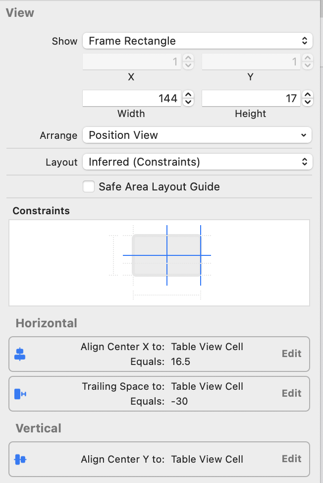 I tried to change TableCellView size to 170 vs 144: