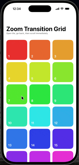 .navigationTitle("Zoom Transition Grid")