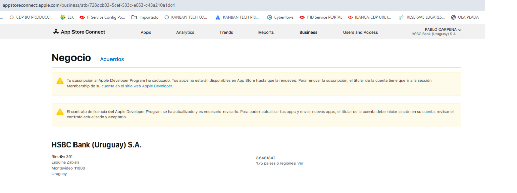 Our Apple Developer Program membership is active and renewed until 2027, and the updated terms and conditions were accepted a few days ago by the account holder. However, in App Store Connect we are still seeing the following messages:
