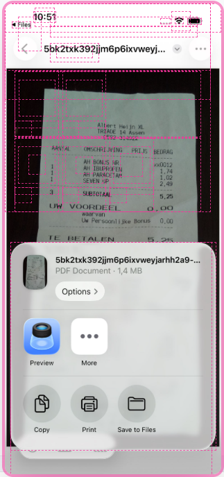 For our tests we need to save pdf's to files. When opening the 'QLOverlayDefaultActionButtonAccessibilityIdentifier' the buttons on the overlay are way off, the coordinates got corrupted.