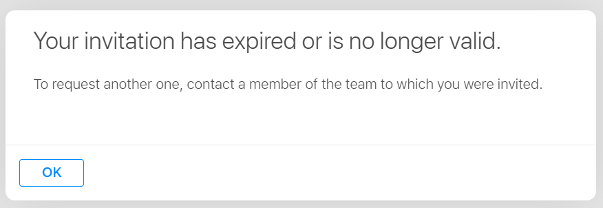 - Instead of opening TestFlight or confirming the invite, I am redirected to a browser page with the following error: "Your invitation has expired or is no longer valid. To request another one, contact a member of the team to which you were invited."
